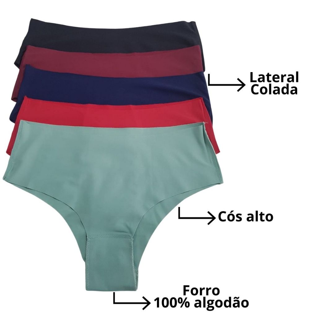 Kit 5 Calcinha Cós Alto Sem Costura Corte A Laser Não Marca - Cos Mamut N/A