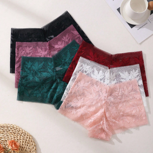 Kit 5 Calcinha Feminina de Renda Sensual Shortinho Caleçon Fio Dental Tanga Lingerie Calesson