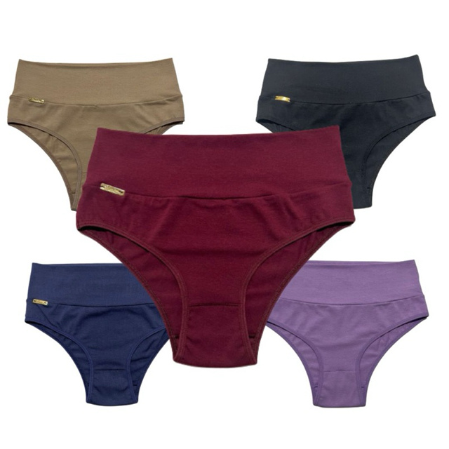 Kit 5 Calcinha Gabby em Algodão de Boa Qualidade Cós Duplo Dobrado