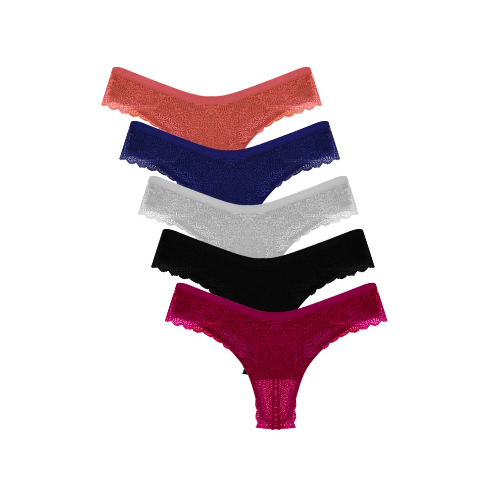 Kit 5 Calcinhas de Renda Lingerie Premium de Luxo
