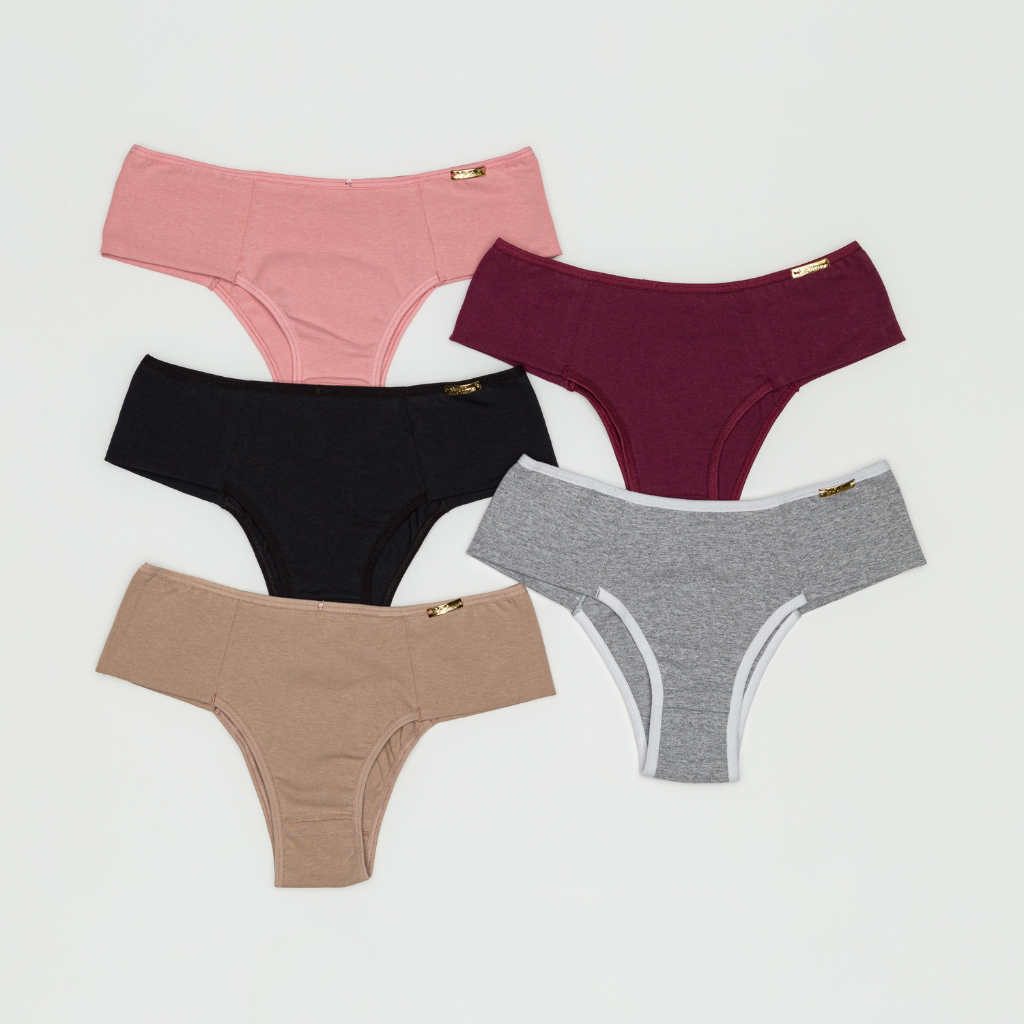 Kit 5 Calcinhas Em Algodão Helena Com Lateral Dupla Viés Confortável