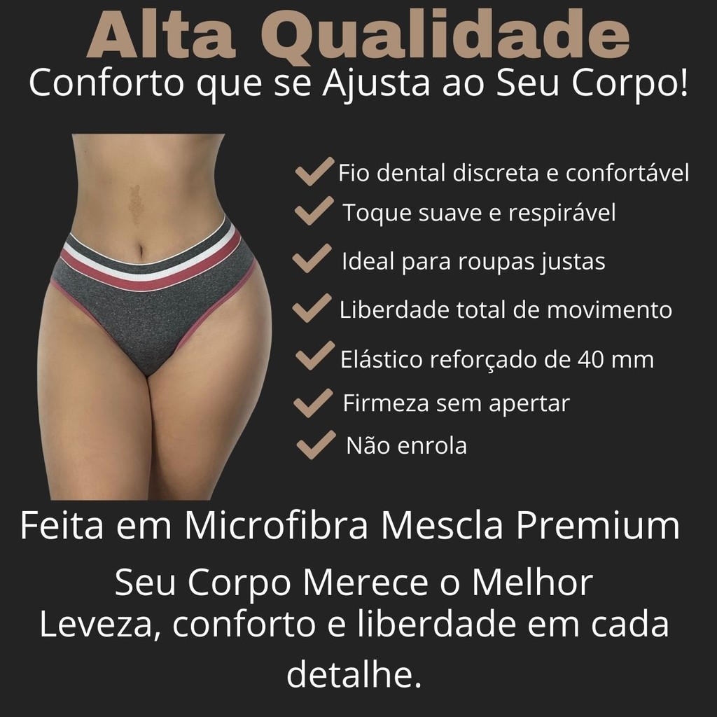 Kit de 5 Calcinhas Fio Dental em Microfibra – Leveza, Conforto e Liberdade de Movimento! Ideal para o dia a dia, ocasiões especiais e roupas justas! Feita em microfibra de alta qualidade, esta calcinha fio dental oferece o equilíbrio perfeito entre conforto e praticidade. Leve, respirável e extremamente macia, ela se ajusta ao corpo sem marcar, sem enrolar e sem incomodar. A peça garante total liberdade de movimento e mantém você fresca e seca ao longo do dia, graças ao tecido que não retém suor. O elástico largo de 40 mm na cintura proporciona firmeza e ajuste seguro, sem necessidade de correções. ✔️ Fio dental que não marca na roupa ✔️ Tecido respirável e que não retém suor ✔️ Confortável, leve e discreto ✔️ Elástico reforçado de 40 mm ✔️ Ideal para roupas justas, festas e esportes Tabela de Medidas Aproximadas Tamanho Cintura Altura da Peça M 32 cm 23 cm G 34 cm 24 cm GG 36 cm 25 cm Dica: Compare com uma peça sua ou tire suas medidas para garantir o tamanho ideal. Produto nacional, feito com qualidade e carinho para oferecer bem-estar e segurança no seu dia a dia. ✅ Envio rápido ✅ Produto pronto para envio ✅ Atendimento pelo chat em caso de dúvidas
