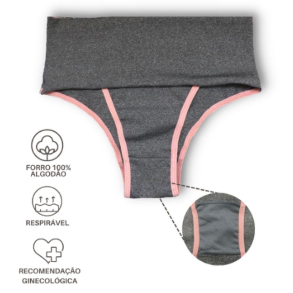Kit 5 Calcinhas Fitness Cós Alto Lingerie Conforto