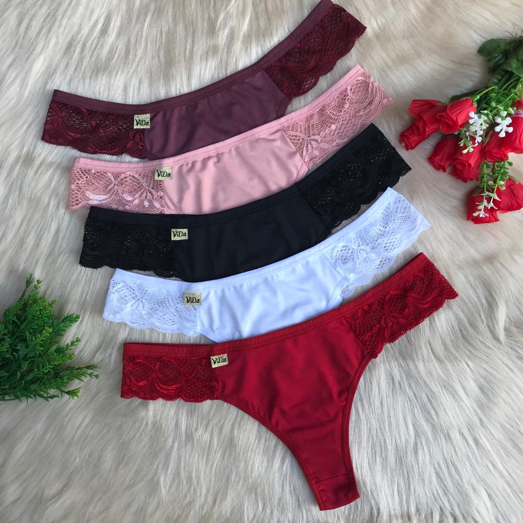 Kit 5 calcinhas tanga fio lisa plus size ViDa lingerie calcinha sexy renda sensual lingeries sexys