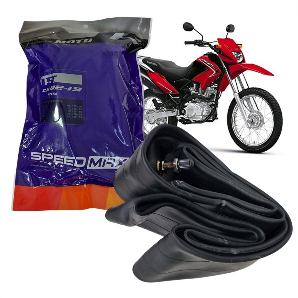 A Câmara de Ar Aro 19 Speedmax foi desenvolvida para oferecer alta resistência, vedação eficiente e durabilidade excepcional para motociclistas que exigem desempenho superior em diferentes tipos de terreno. Fabricada com borracha butílica de alta qualidade, proporciona flexibilidade e proteção extra, reduzindo os riscos de furos e vazamentos. - Marca: Speedmax- Modelos Compatíveis de Pneus: 90/90-19, 80/90-19, 3.00-19, 100/80-19, 3.25-19- Aplicação: Motos com aro 19”- Material: Borracha butílica reforçada- Válvula: TR4 resistente a altas pressõesPrincipais Benefícios:- Alta resistência a impactos e perfurações- Vedação eficiente para máxima segurança- Flexível e de fácil instalação- Maior vida útil para uso urbano e off-roadHonda:- Bros 125 – Dianteiro- Bros 150 – Dianteiro- Bros 160 – Dianteiro- XRE 190 – Dianteiro- CB 400 – Dianteiro- CB 450 – DianteiroYamaha:- Crosser 150 – Dianteiro Kawasaki: - Versys 300 - Dianteiro Conteúdo da Embalagem:05 Câmaras de Ar Speedmax Aro 19 Recomendações:- Verifique a compatibilidade com sua moto antes da compra.- A instalação deve ser feita por um profissional qualificado.- Realize inspeções periódicas para evitar desgaste prematuro. Garantia:- 90 dias contra defeitos de fabricação. IMAGENS MERAMENTE ILUSTRATIVAS