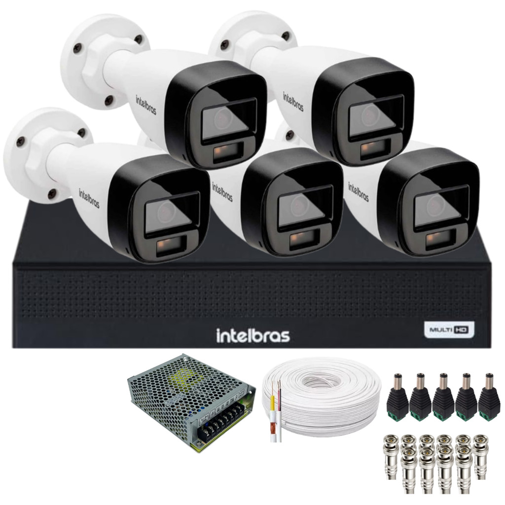 Kit 5 Câmeras Imagem Coloridas 1120b Full Color Intelbras Dvr Intelbras 08 Canais 1108-c S/Hd