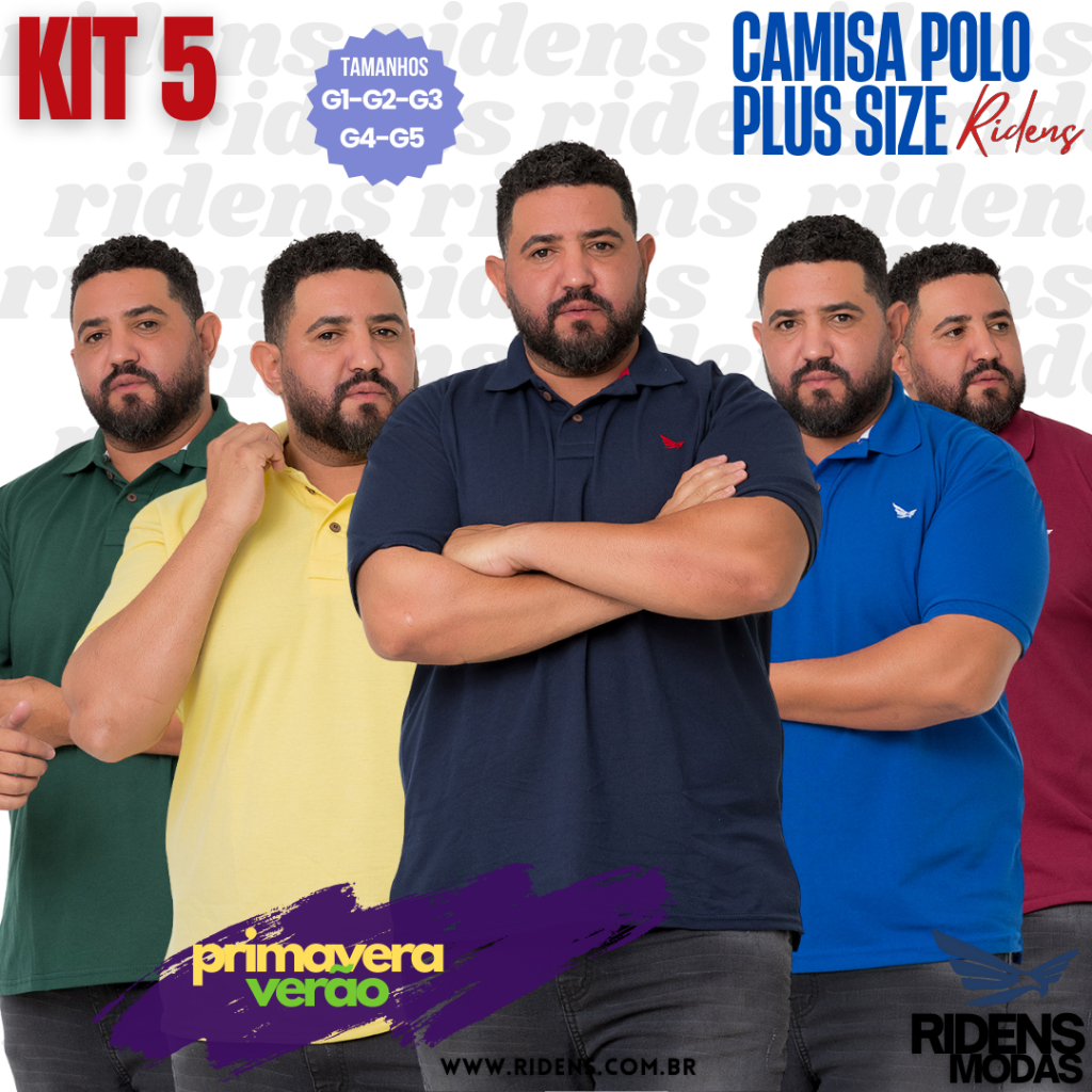 kit 5 camisa gola polo Ridens G1 G2 G3 G4 G5 plus size masculino super promoção