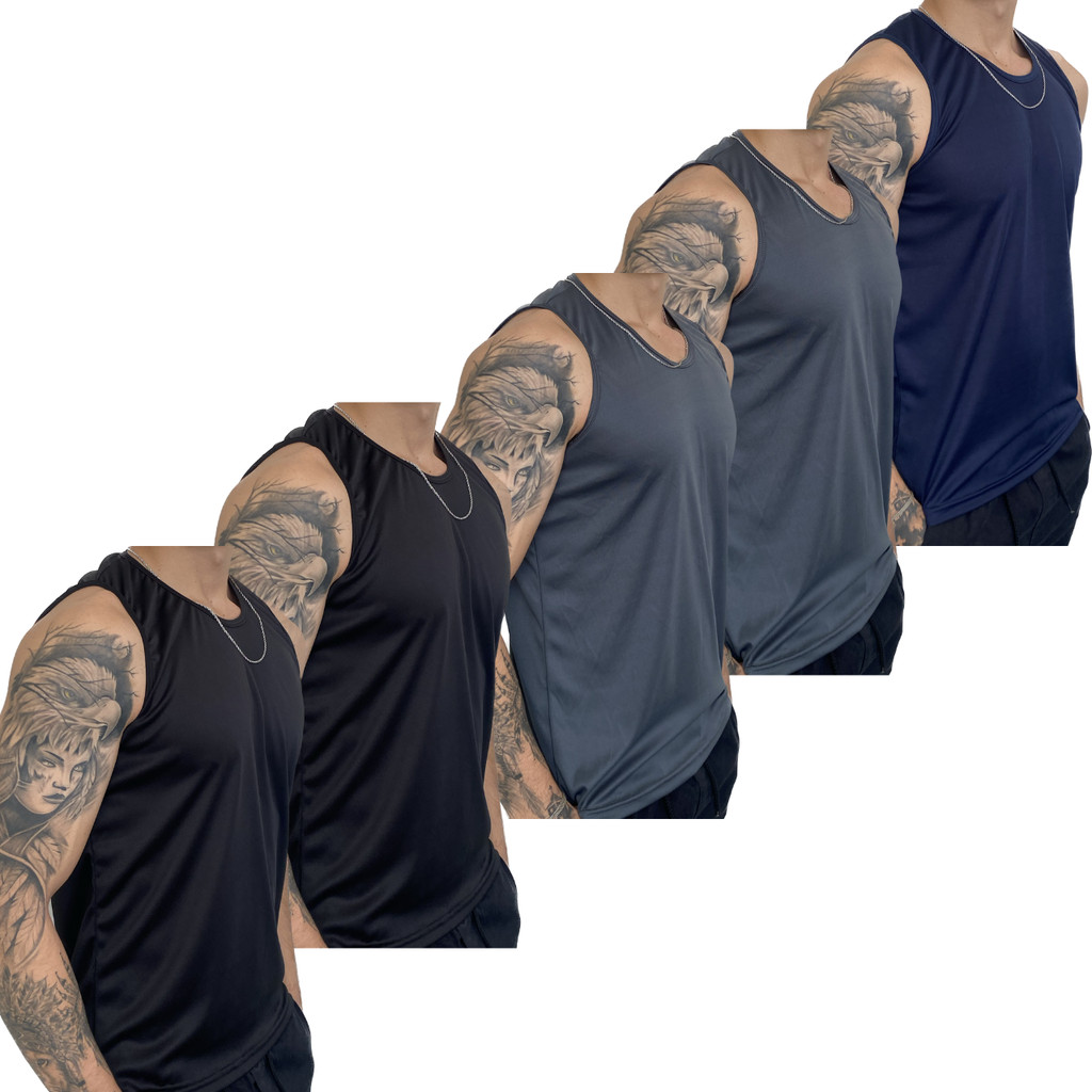 Kit 5 Camiseta Regata Dry Fit Masculina Academia Corrida Praia Treino Fitness Esportiva Casual