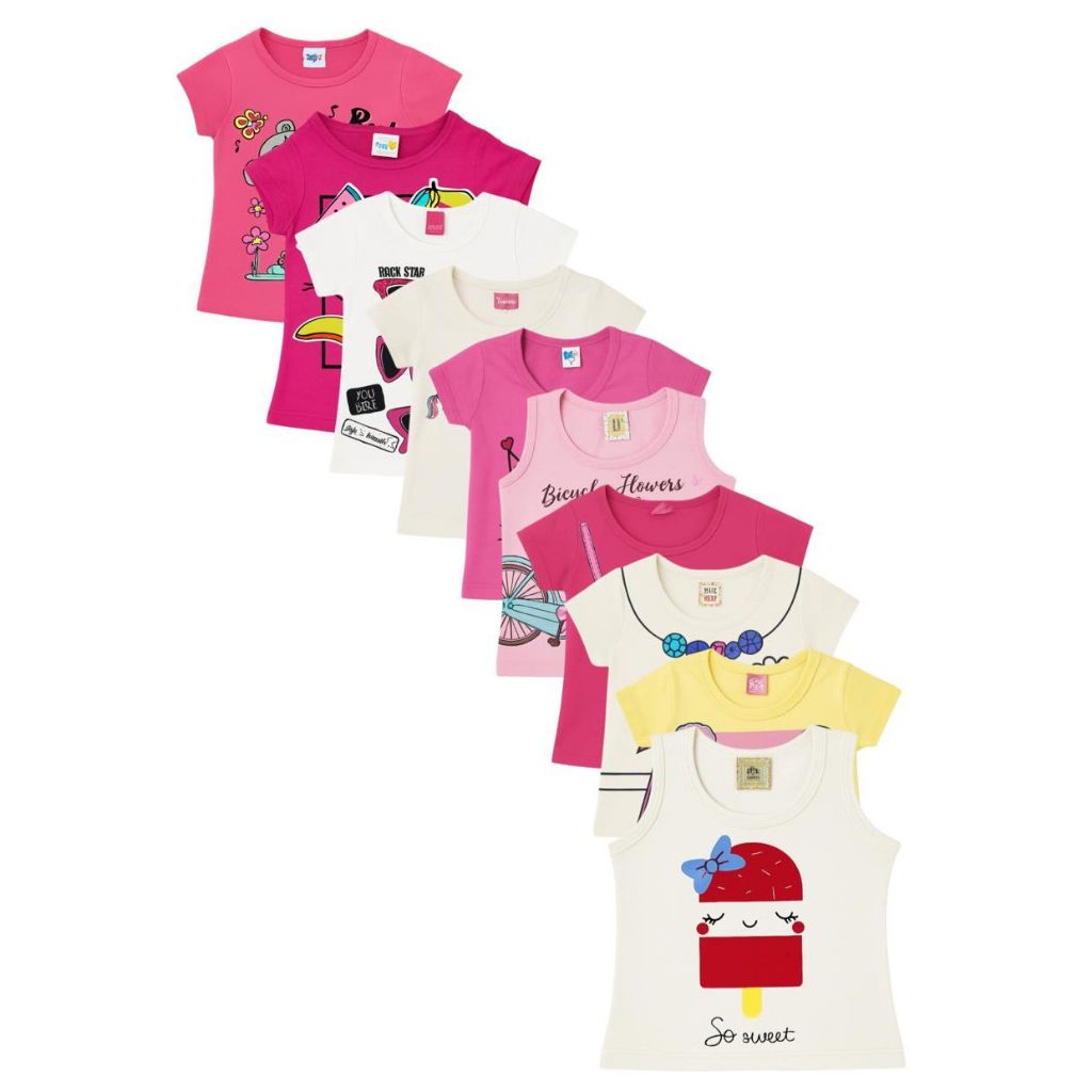 Kit 5 Camisetas Femininas Infantil Verão TAMANHO 01 e 2 Anos