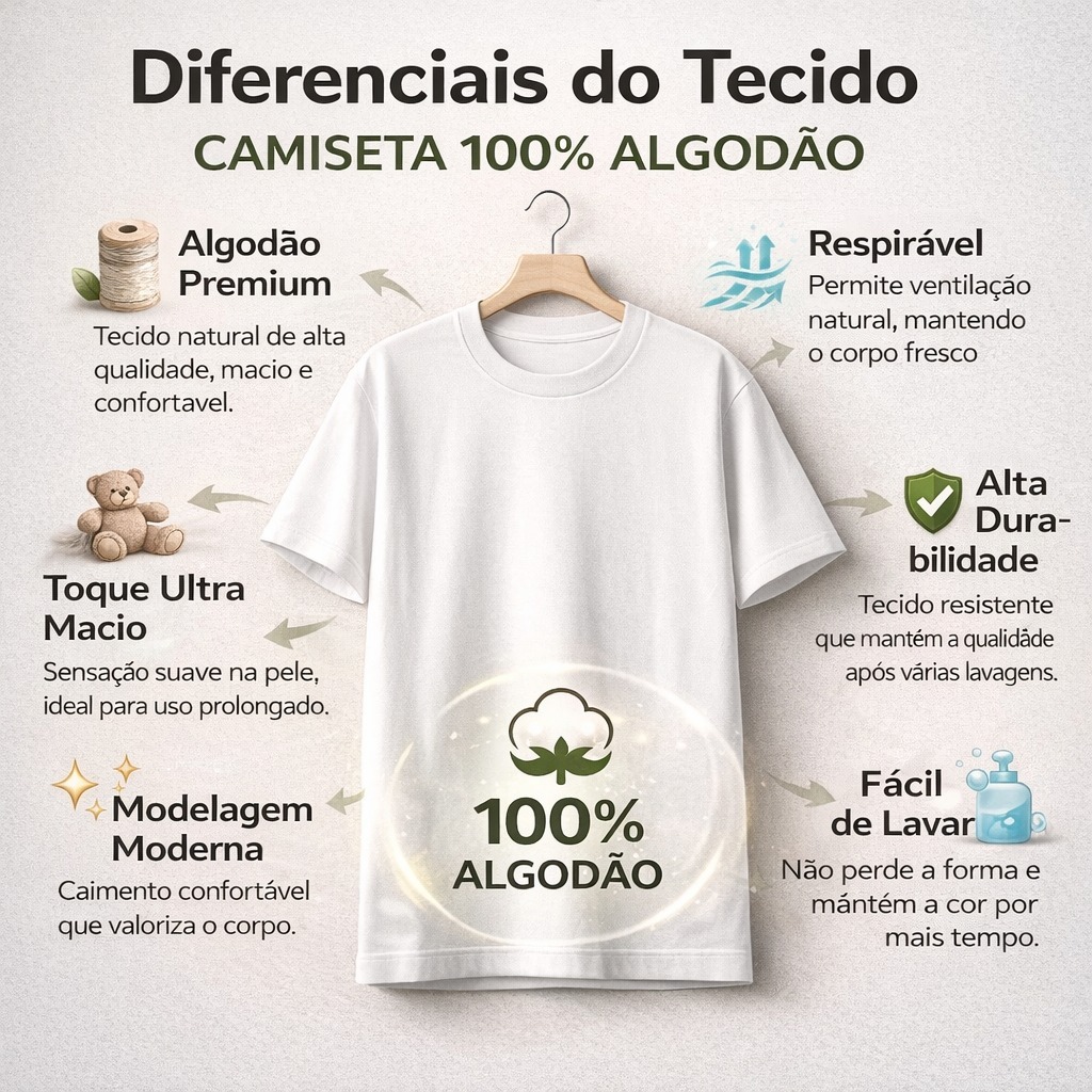 ✨ Conforto Premium em Cada Detalhe ✨ Com 96% algodão peruano original e 4% elastano, a camiseta premium oferece um equilíbrio perfeito entre maciez, resistência e caimento impecável. Uma peça essencial para quem valoriza estilo sem abrir mão do conforto. ✔️ Modelagem americana: moderna e versátil ✔️ Tecido leve, respirável e com elasticidade natural ✔️ Costura reforçada que garante maior durabilidade ✔️ Mantém a cor e o formato mesmo após várias lavagens 📏 Confira a tabela de medidas para escolher o tamanho ideal. ⚠️ As cores são enviadas de forma aleatória, proporcionando exclusividade em cada pedido.