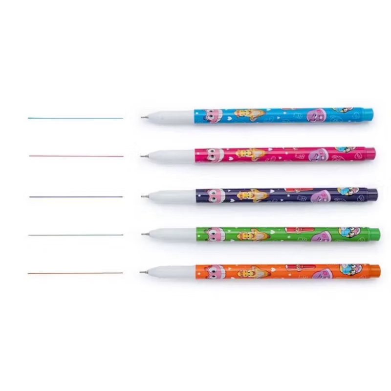 Kit 5 Caneta De Gel Colorido Corpo Estampada 0.6 Fini Cores Sortidas - Léo e Léo