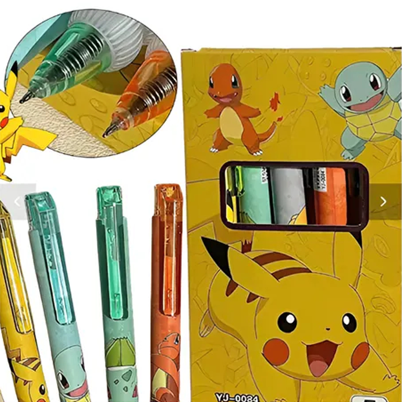 Kit 5 Canetas Esferográficas Retráteis em Gel Pokémon - Tinta Preta