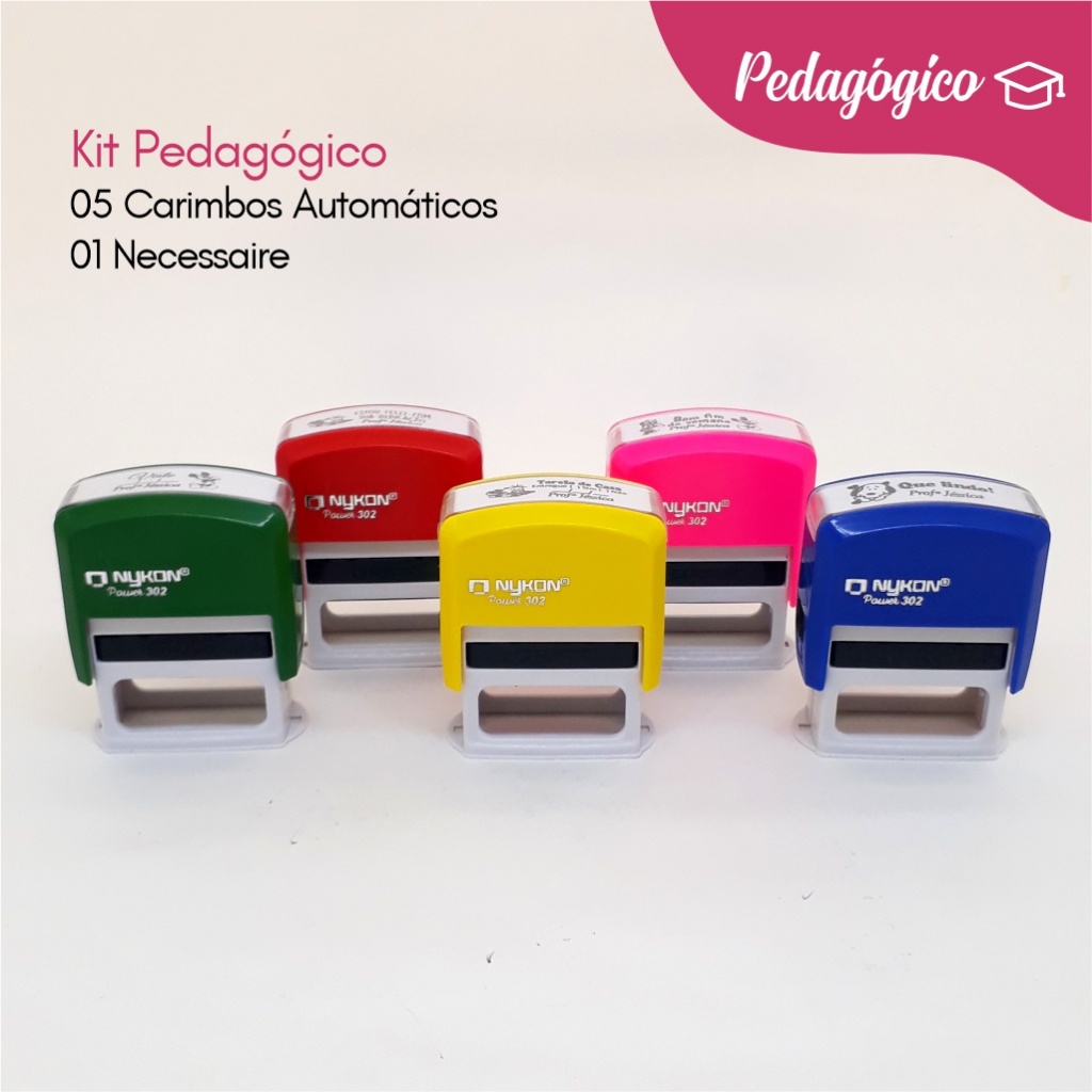Kit 5 Carimbos Pedagógicos Flork + Necessaire Pedagógico Professor Professora Infantil Personalizado