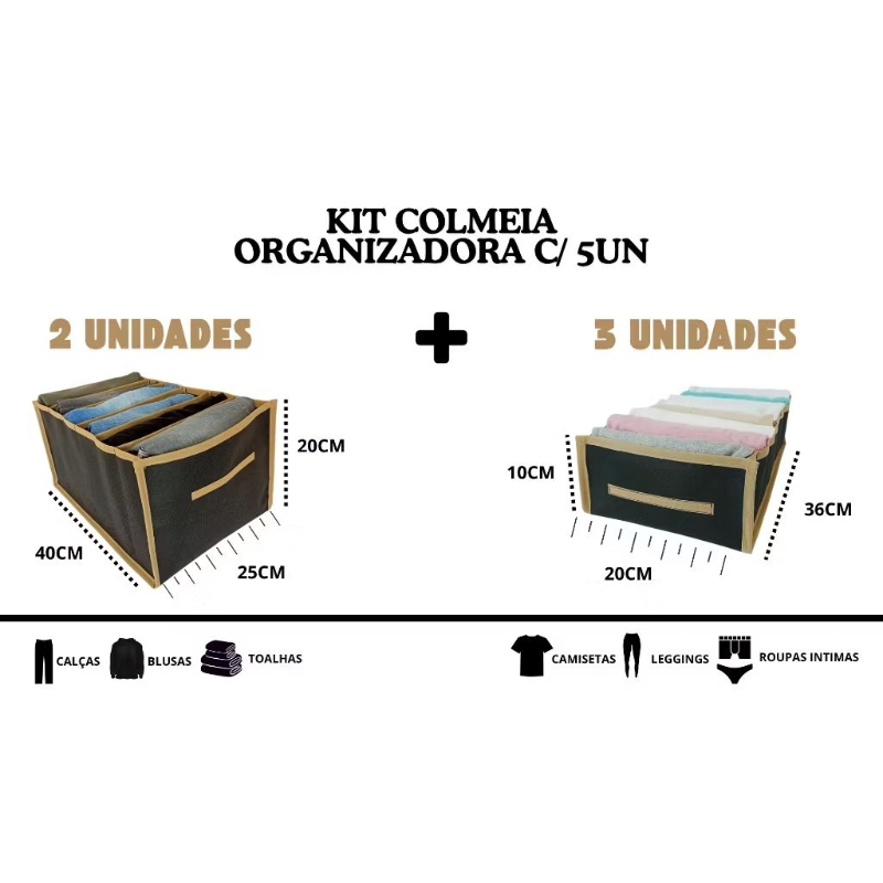 Kit 5 Colmeia Organizadora de gavetas e Guarda Roupas 2 un GG/ 3 un P