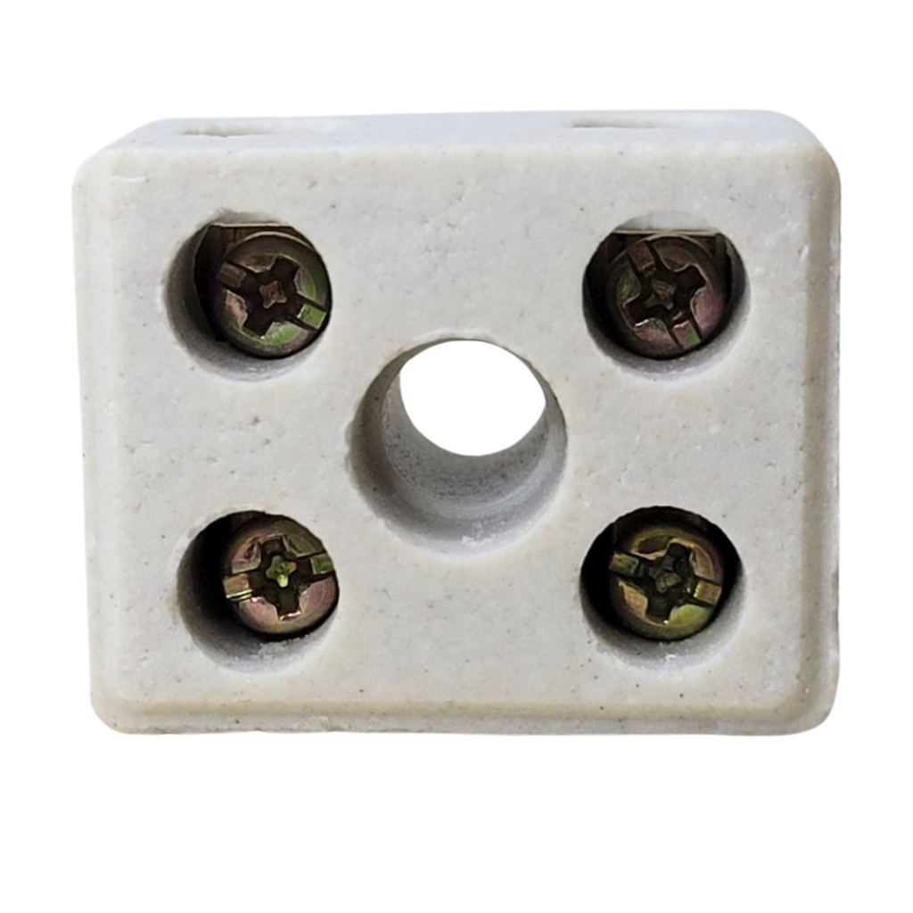 Kit com 5 unidades Conector de Porcelana 2 Polos 25A para Cabos de 6mm² - Modelo F1025 Ideal para conexões que exijam resistência à alta temperatura, como por exemplo, instalações de chuveiros elétricos, possui túnel e parafuso em latão inoxidável, garantindo maior segurança às instalações. Informações Técnicas do Produto Polos 2 Bitola do Cabo Até 6mm² Corrente Máxima 25A Tensão Máxima de Operação 660V Material Corpo em porcelana e terminal e parafuso em latão inoxidável