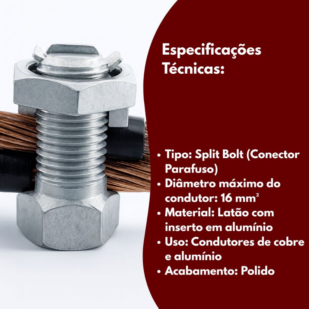 Kit 5 Conector Split Bolt 16mm Bimetálico Emenda Cabo Alumínio e Cobre Aterramento Elétrico Pressão