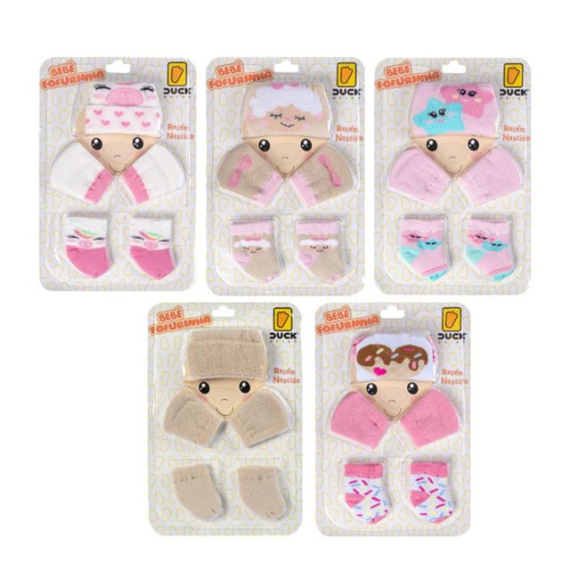 Kit 5 conjunto Meia Luva Touca para Bebê Recém Nascido 0 a 03 meses Maternidade Enxoval Fofurinha