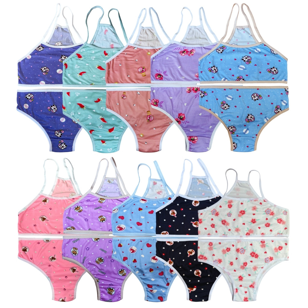 Kit 5 Conjuntos Juvenil para Pré Adolescente Estampado Calcinha e Sutiã Suede Forrado