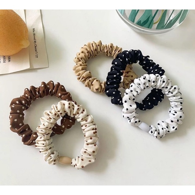 KIT 5 cores Elásticos de Cabelo com Poá Vintage – Estilo Retrô e Charmoso