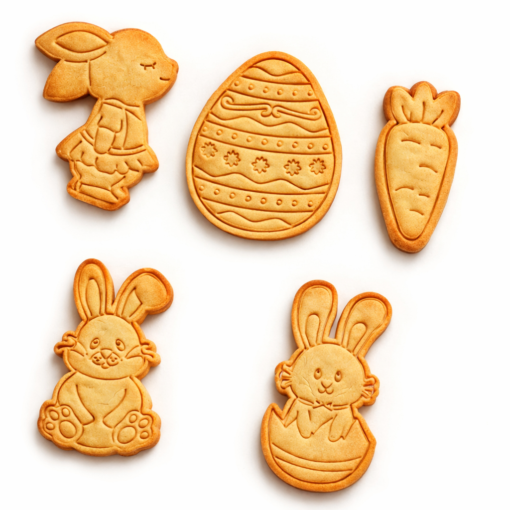 Kit 5 Cortadores de Biscoito Páscoa Coelho Ovo Cenoura Confeitaria