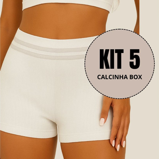 Kit 5 Cueca Calcinha Box Canelada Cós Alto Tecido Poliamida Conforto Moda Lingerie Feminina