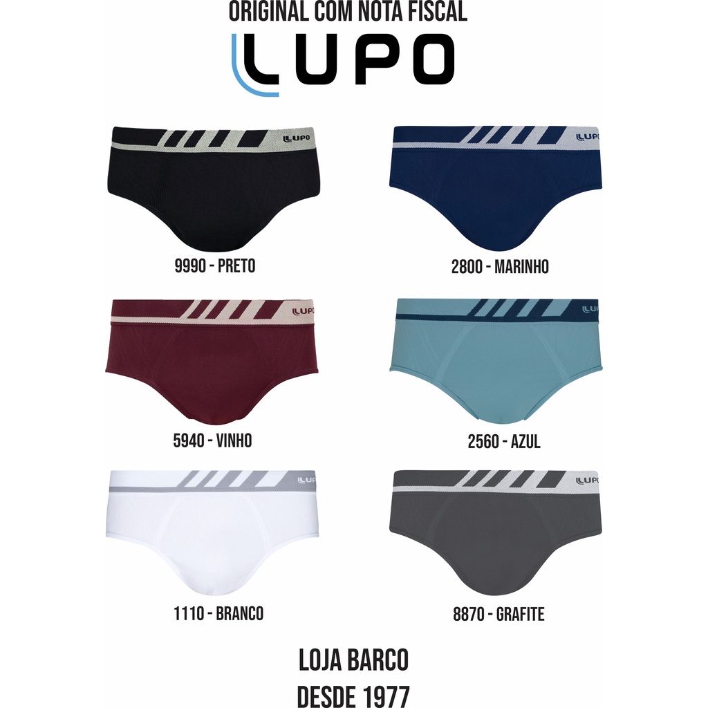 PRODUTO ORIGINAL!!! LOJA FÍSICA DESDE 1977 COMPRE COM CONFIANÇA! 5 CUECAS SLIP LUPO REF:691-002 MICROFIBRA Descrição: - Kit com 5 cuecas slip, confeccionadas em microfibra de toque extremamente suave e macio. - Desenvolvidas com a tecnologia sem costura, não marca sob a roupa e proporciona muito mais conforto. - Parte frontal com formato anatômico para ajuste perfeito. - Cintura com elástico reforçado, personalizado com o nome da marca. - Ideal para o dia a dia, com conforto e segurança, com tecido antimicrobial (Evita proliferação de bactérias). Tamanhos: P: 38/40 M: 42/44 G: 46/48 GG: 50/52 XG: 54/56 Cores: - Branca - Preta - Grafite - Azul Marinho - Azul - Vinho Cores sortidas vem 1 de cada cor dentro das cores da coleção podendo haver repetição caso haja falta de alguma cor, o que raramente acontece. Composição: 93% Poliamida, 4% Elastano e 3% Poliester.