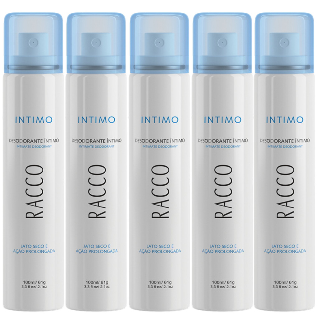 Kit 5 Desodorante Spray Jato Seco Íntimo Racco Original 100ml Desodorantes Feminino Masculino