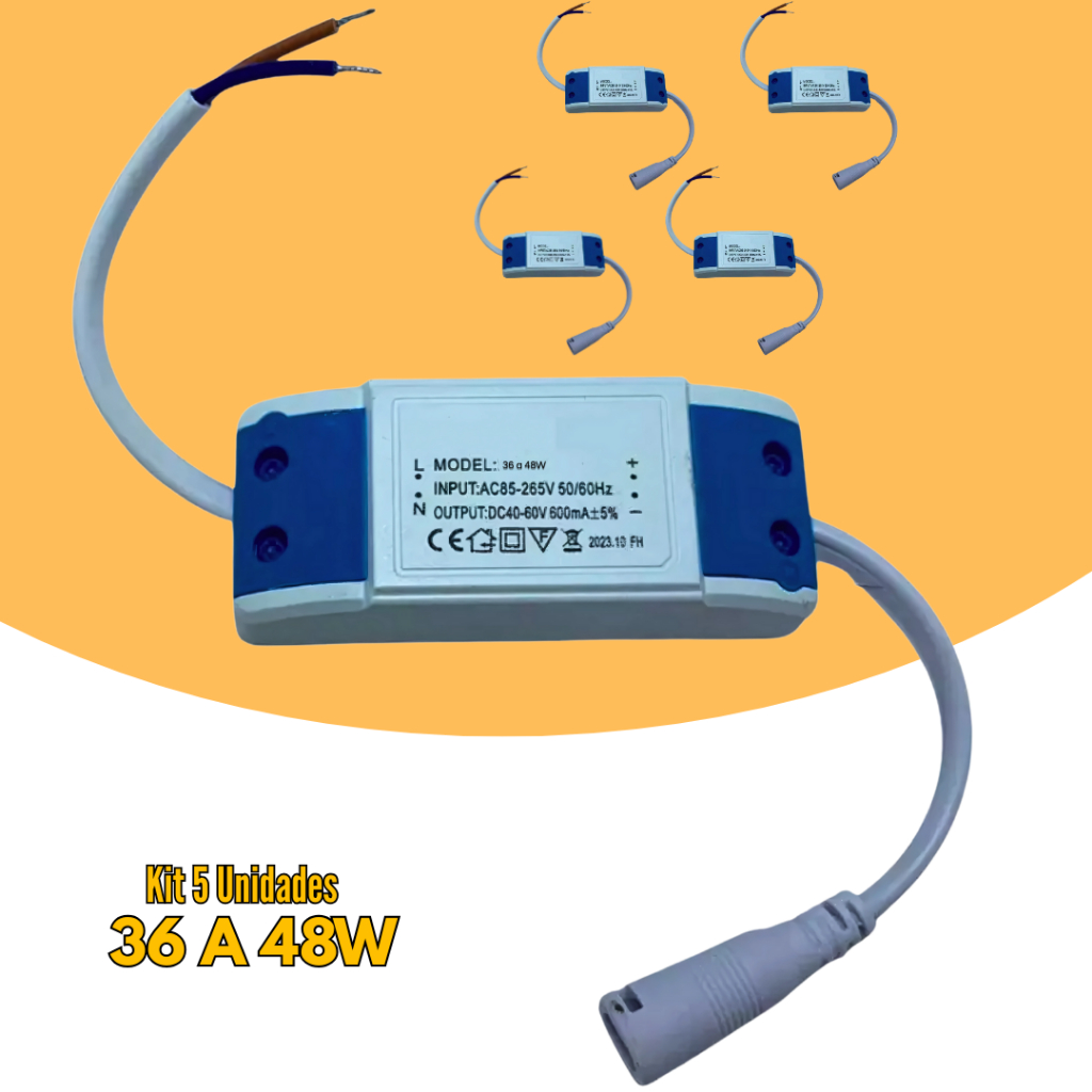 Kit 5 Driver Reator Led Bivolt 36w a 48w Fonte Painel Plafon