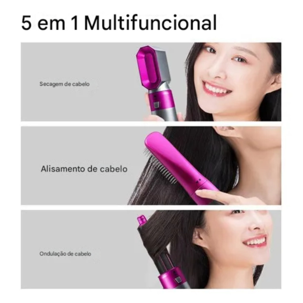 Kit 5 em 1 Secador Escova Alisadora e Modeladora Profissional Cabelos Lisos Brilhantes e Volume