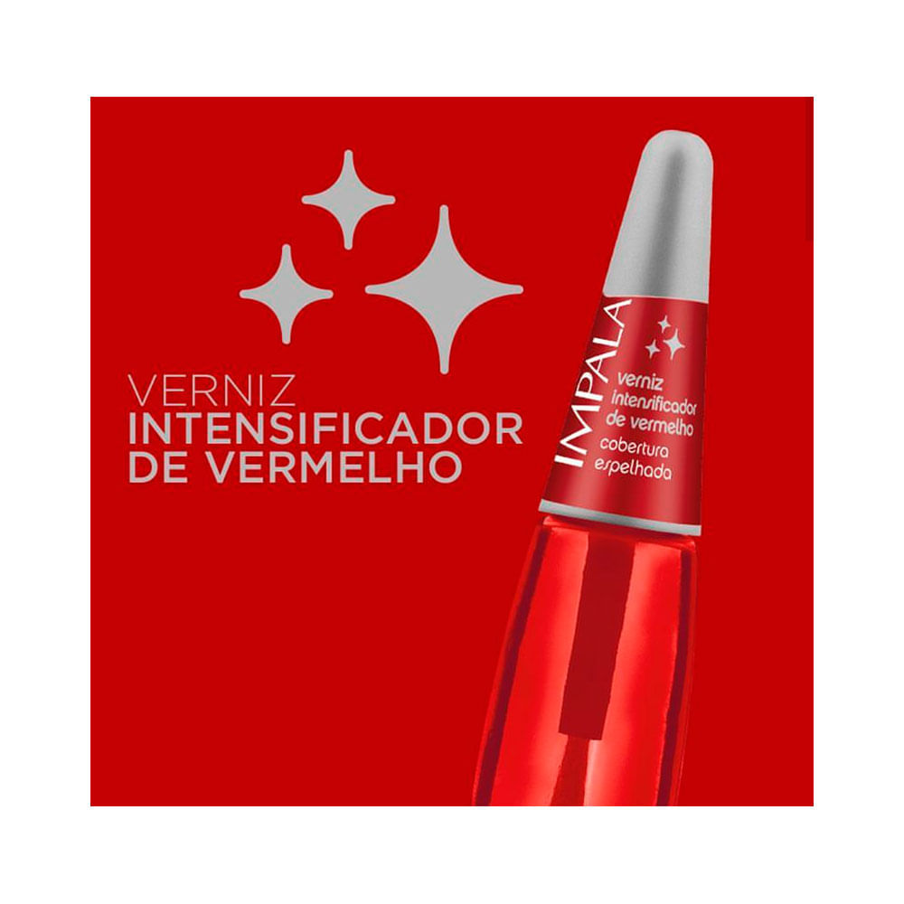 Kit 5 Esmalte Impala Verniz Intensificador Vermelho Extra Brilho Manicure e Pedicure
