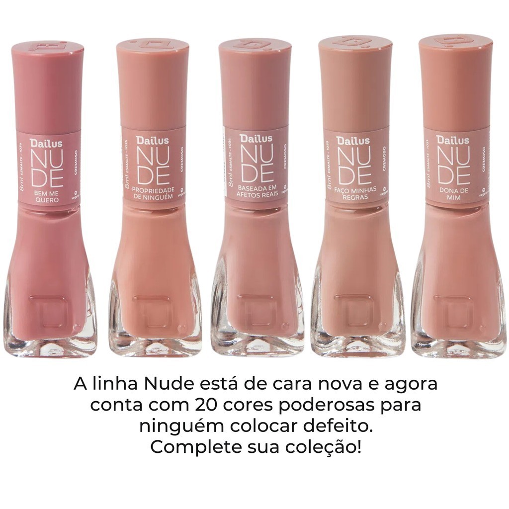 | Kit 5 Esmaltes Dailus Tons de Nude Coleção Nova Dailus este produto | R$ 42,90 | 39% | 4.9/5 | 9 |