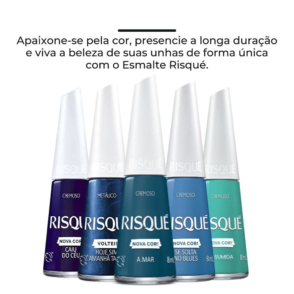Kit Esmaltes Risqué – Tons de Azul | Nova Coleção | Atacado 💙 ATENÇÃO: Antes de finalizar a compra, verifique as opções disponíveis no anúncio: 5, 4, 3 ou 2 esmaltes. Este kit reúne apenas os tons mais desejados de azul da Risqué, perfeitos para quem busca modernidade, elegância e variedade em uma única seleção. Ideal para uso pessoal, manicures e montagem de kits personalizados. Esmaltes com fórmula hipoalergênica, secagem rápida e brilho impecável. 🎨 Cores Inclusas no Kit (Opção Completa com 5 – Tons de Azul): Se Solta no Blues A.mar Oi, Sumida Caiu do Céu Hoje Sim, Amanhã Talvez (As variações com menos unidades são montadas a partir dessas cores.) ⭐ Por que escolher este kit? ✔ Somente cores azuis, modernas e versáteis ✔ Esmaltes Risqué 100% originais ✔ Ótima cobertura, brilho intenso e alta durabilidade ✔ Ideal para uso diário, manicures e kits presenteáveis ✔ Excelente custo-benefício no atacado 💬 Caso tenha qualquer dúvida, estamos à disposição para ajudar!