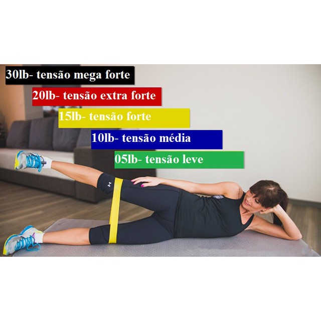 Kit 5 Faixas Elásticas de Resistência 5 Níveis para Exercícios Yoga Pilates Academia