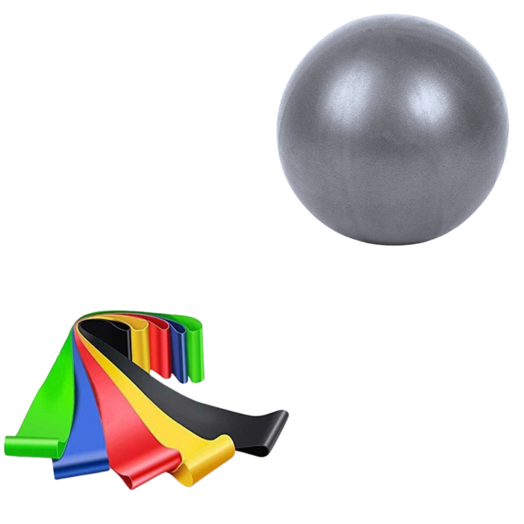 Kit 5 Faixas Elásticas Miniband + Bola Pilates 25cm Treino Yoga Funcional em casa Fisio Força Perna