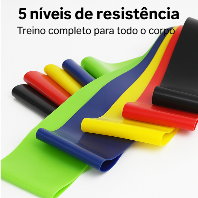Kit 5 Faixas Elásticas Para Exercícios Multifuncional Yoga Fisioterapia e Treino