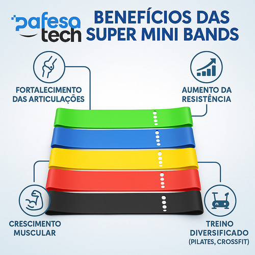 Kit Super Mini Band – 5 Faixas Elásticas com Diferentes Intensidades para Treino Completo O Kit Super Mini Band é perfeito para quem deseja treinar em casa, na academia ou ao ar livre. Composto por 5 faixas elásticas circulares de diferentes intensidades (super leve, leve, médio, forte e super forte), ele permite treinos completos com várias opções de resistência. Indicado para: • Condicionamento físico e emagrecimento • Fortalecimento e tonificação muscular • Alongamento e aumento de flexibilidade • Treino funcional, crossfit e calistenia • Reabilitação motora e articular • Exercícios de fisioterapia (com acompanhamento profissional) O kit oferece versatilidade para trabalhar pernas, glúteos, braços, costas e abdômen, possibilitando centenas de exercícios. Acompanha manual de dicas, e você ainda pode acessar facilmente aulas gratuitas no YouTube. Prático, leve e portátil Ideal para quem busca praticidade, o modelo é compacto e pode ser levado na bolsa, mochila ou bag simples que acompanha o produto. Perfeito para treinos em casa, parques ou academia. Benefícios para o seu corpo • Aumento da força e resistência • Fortalecimento muscular e articular • Melhora da coordenação motora • Crescimento de massa muscular • Aumento da flexibilidade • Auxilia na prevenção e reabilitação de lesões • Permite treinar em qualquer lugar Especificações Técnicas Material: Látex Medidas: 30 cm x 5 cm (sem esticar) Espessuras variáveis conforme a resistência: 0,35 mm a 1,1 mm Níveis de Intensidade • Verde: 2–5 kg • Azul: 5–7 kg • Amarela: 7–9 kg • Vermelha: 9–14 kg • Preta: 16–18 kg Cuidados e Higienização Armazene em local seco e limpo. Para limpeza, use pano seco ou úmido com água e sabão neutro. Não utilizar: solventes, ceras, óleos, silicones, álcool ou produtos abrasivos. Conteúdo da Embalagem • 5 Faixas Elásticas com resistências diferentes • 1 Bag de transporte • 1 Manual de utilização Se quiser, posso criar também: ✅ Título SEO otimizado ✅ Bullet points específicos para Shopee/Mercado Livre ✅ Versão ainda mais curta para anúncios minimalistas Só pedir!