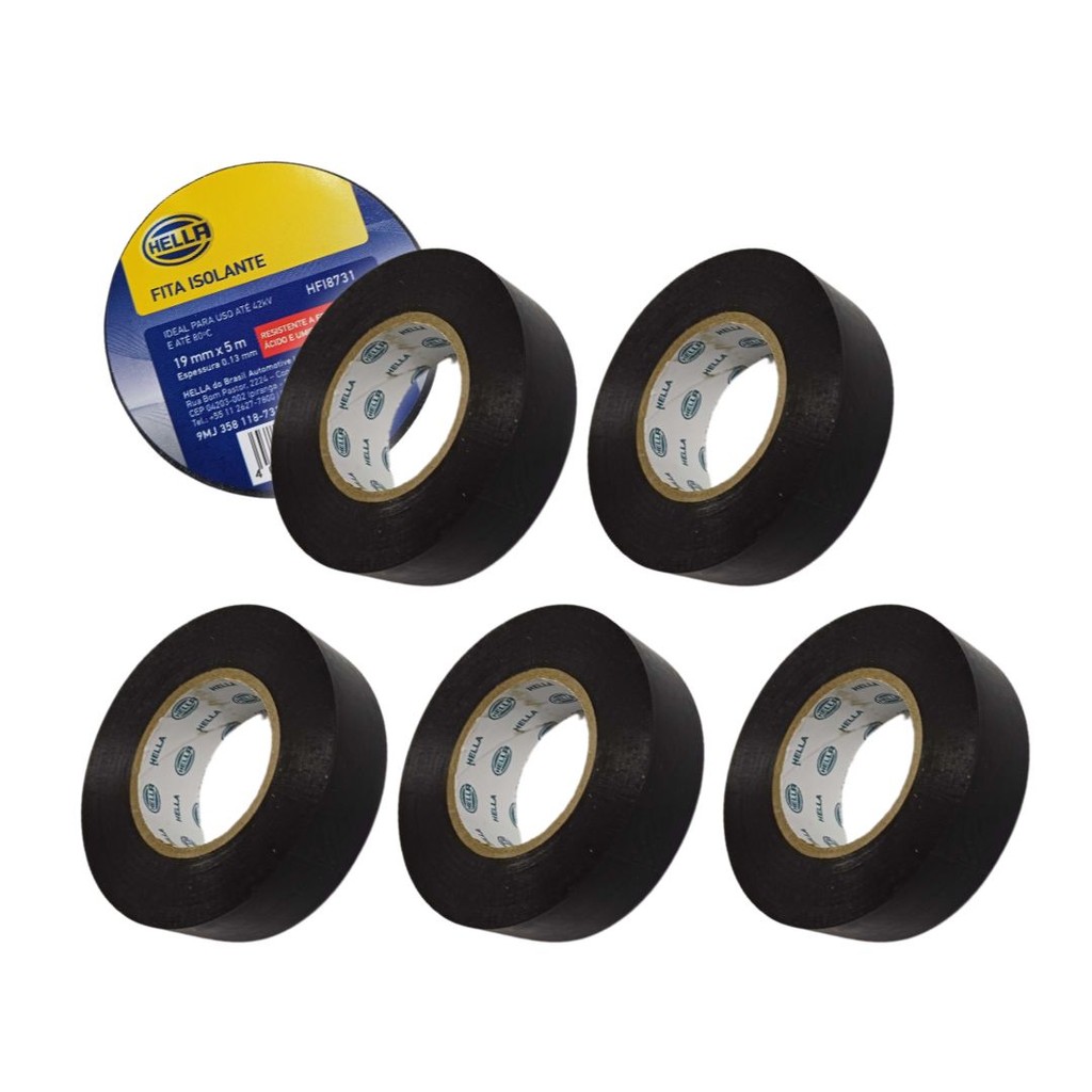 Kit 5 Fita Isolante 19mm x 5 metros Resistente Fogo, Graxa, Ácido, Umidade Hella Marca: Hella; Código: HFI8731 / 9MJ 358 118-731 ; Características: Especificações: - Espessura: 0,013mm; - Largura: 19mm; - Comprimento: 5 Metros; - Resistente a Fogo, Graxa, Ácido e Umidade; - Uso ideal até 42Kv e 80°c; Aplicação: - Universal; Produto Original Hella 12 Meses de Garantia Itens inclusos: - 5 Fita Isolante 5 Metros; ----------------------- - A AMPEC AUTOPEÇAS não se responsabiliza pelo mau uso ou instalação indevida do produto, sempre recomendamos que a instalação seja feita por um profissional especializado. - O produto é novo ? Sim, não trabalhamos com produtos usados, remoldados ou remanufaturados. -Tem disponibilidade do produto ? Temos disponibilidade de todos nossos produtos enquanto durarem os estoques, favor nos consultar antes da compra. -O produto vem com nota fiscal ? Sim, todos os nossos produtos acompanham nota fiscal. - Imagem ilustrativa utilizada para identificação e demonstração de produto. - As Marcas e Modelos citadas no anúncio, pertencem aos seus respectivos fabricantes, somente mencionadas como referências para o uso correto do produto, conforme artigo 31 da Lei: 8078 de 11.09.1990 * Não temos qualquer vínculo com estas empresas. Infelizmente não emitimos NF para revenda fora do estado do Paraná. Desculpe. Fora do estado atendemos apenas destinado a consumidor final.