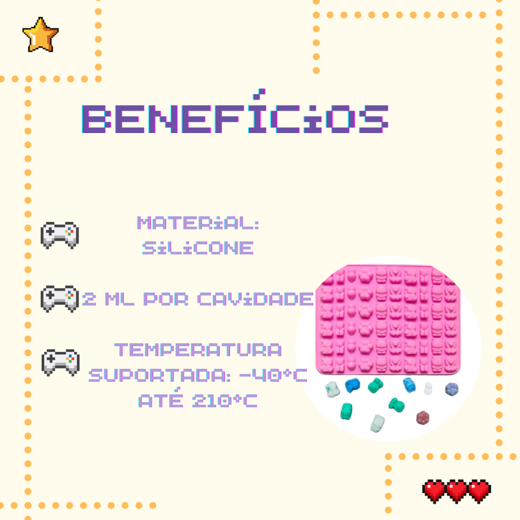 O Kit com 5 Moldes de Silicone Premium é ideal para quem deseja criar mini doces e detalhes decorativos com praticidade e excelente acabamento. Com formatos variados (ursinho, dinossauro, mini coração, mini rosquinha e animais safari), permite produzir chocolates, gelatinas, balas de goma, pasta americana, biscuit e muito mais. Fabricados em silicone atóxico, flexível e resistente, suportam temperaturas de -40°C a 210°C. São antiaderentes, fáceis de limpar e reutilizáveis, garantindo ótimo desempenho tanto para uso culinário quanto artesanal. Produto com envio seguro, nota fiscal e garantia contra defeitos de fabricação. 📦 O QUE VOCÊ IRÁ RECEBER? 01 Molde Silicone Dinossauros (48 cavidades) 01 Molde Silicone Ursinhos (50 cavidades) 01 Molde Silicone Mini Corações (55 cavidades) 01 Molde Silicone Mini Rosquinhas (48 cavidades) 01 Molde Silicone Animais Safari (60 cavidades) 02 Conta-gotas (cores sortidas como acompanhamento) ✅ BENEFÍCIOS SILICONE ATÓXICO E LIVRE DE BPA RESISTENTE A ALTAS E BAIXAS TEMPERATURAS TOTALMENTE FLEXÍVEL E ANTIADERENTE FÁCIL DESENFORME E LIMPEZA SIMPLES REUTILIZÁVEL E DURÁVEL 🔎 CARACTERÍSTICAS Material: Silicone premium atóxico Temperatura suportada: -40°C até 210°C Não deforma, não amassa e mantém os detalhes Ideal para chocolate, gelatina, goma, pasta americana e artesanato 📏 ESPECIFICAÇÕES RESUMIDAS Molde Ursinho 50 cavidades 1 ml por cavidade Ursinho: 1,9 cm x 1,1 cm Molde Dinossauro 48 cavidades 2 ml por cavidade 1,6 cm x 2,2 cm Molde Mini Coração 55 cavidades 2 ml por cavidade 1,6 cm x 1,2 cm Molde Mini Rosquinhas 48 cavidades 2 ml por cavidade Diâmetro: 2 cm Molde Animais Safari 60 cavidades 1,7 cm x 2 cm 2 ml por cavidade ❓ PERGUNTAS FREQUENTES 1. Pode usar no forno e freezer? Sim. O produto suporta temperaturas de -40°C até 210°C. 2. O material é seguro para alimentos? Sim. Produzido em silicone atóxico e livre de BPA. 3. É fácil de desenformar? Sim. O silicone é flexível e antiaderente, facilitando a remoção sem danificar os detalhes. 4. Pode usar para artesanato? Sim. Também pode ser utilizado com biscuit, resina fria e outros materiais artesanais. 5. O produto acompanha nota fiscal? Sim. Enviamos com nota fiscal e garantia contra defeitos de fabricação. Garanta agora seu kit e produza mini doces e detalhes criativos com acabamento profissional! 🍫✨ palavras-chave: molde, forma, silicone, bala, goma, vela, artesanato, bombom, chocolate, confeitaria, candy, gelatina, bala, balinha, moldar
