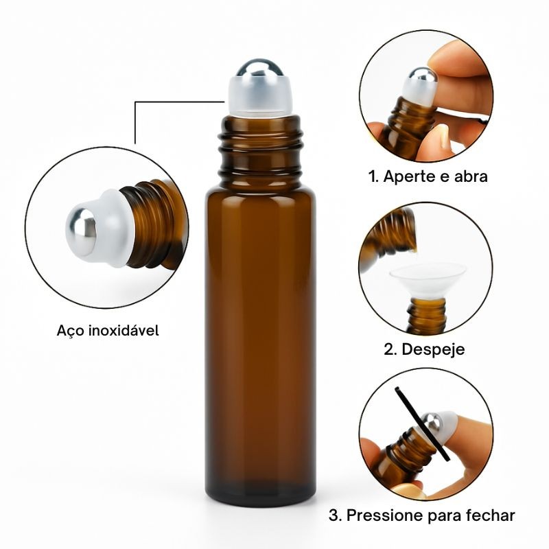 Eleve sua rotina de aromaterapia e beleza com este exclusivo kit de frascos de vidro âmbar 5ml com roll-on em inox. Perfeitos para armazenar e aplicar óleos essenciais, perfumes e blends especiais, esses frascos combinam praticidade, durabilidade e um design sofisticado. Qualidade Premium: Fabricados em vidro âmbar resistente, protegem seus óleos e fragrâncias contra a luz, preservando suas propriedades por muito mais tempo. Roll-On em Aço Inox: O aplicador roll-on em inox garante uma distribuição suave e precisa do produto, sem desperdícios. Práticos e Seguros: Cada frasco vem com tampa vedante, evitando vazamentos e mantendo seu conteúdo protegido, ideal para levar na bolsa, necessaire ou em viagens. Tamanho Ideal: Com capacidade de 5ml, são perfeitos para o uso diário ou para criar kits personalizados de aromaterapia, presentes ou lembrancinhas. Sustentável e Elegante: O vidro é um material reciclável, sendo uma alternativa consciente e durável ao plástico, além de dar um toque de classe ao seu kit de beleza. Especificações: Material do Frasco: Vidro âmbar Aplicador: Roll-on em aço inox Tampa: Rosqueável preta Capacidade: 5ml Use para: óleos essenciais, perfumes, essências, blends personalizados e muito mais. Garanta já o seu kit e tenha sempre os seus aromas favoritos à mão, com segurança e estilo! *IMAGENS MERAMENTE ILUSTRATIVAS*
