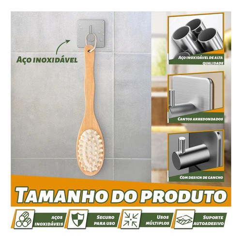 Kit 5 Ganchos Adesivos Autoadesivos Inox 304 Escovado Prateado - Resistente e Durável