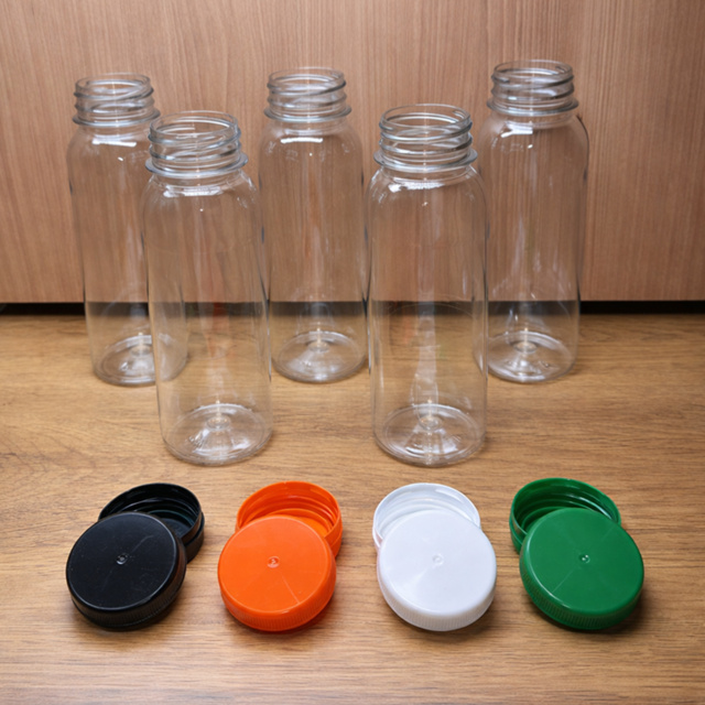 Kit 5 Garrafas PET 250ml Cristal Cilíndrica Lisa Com Tampa PCO 38mm Ideal para Sucos Água