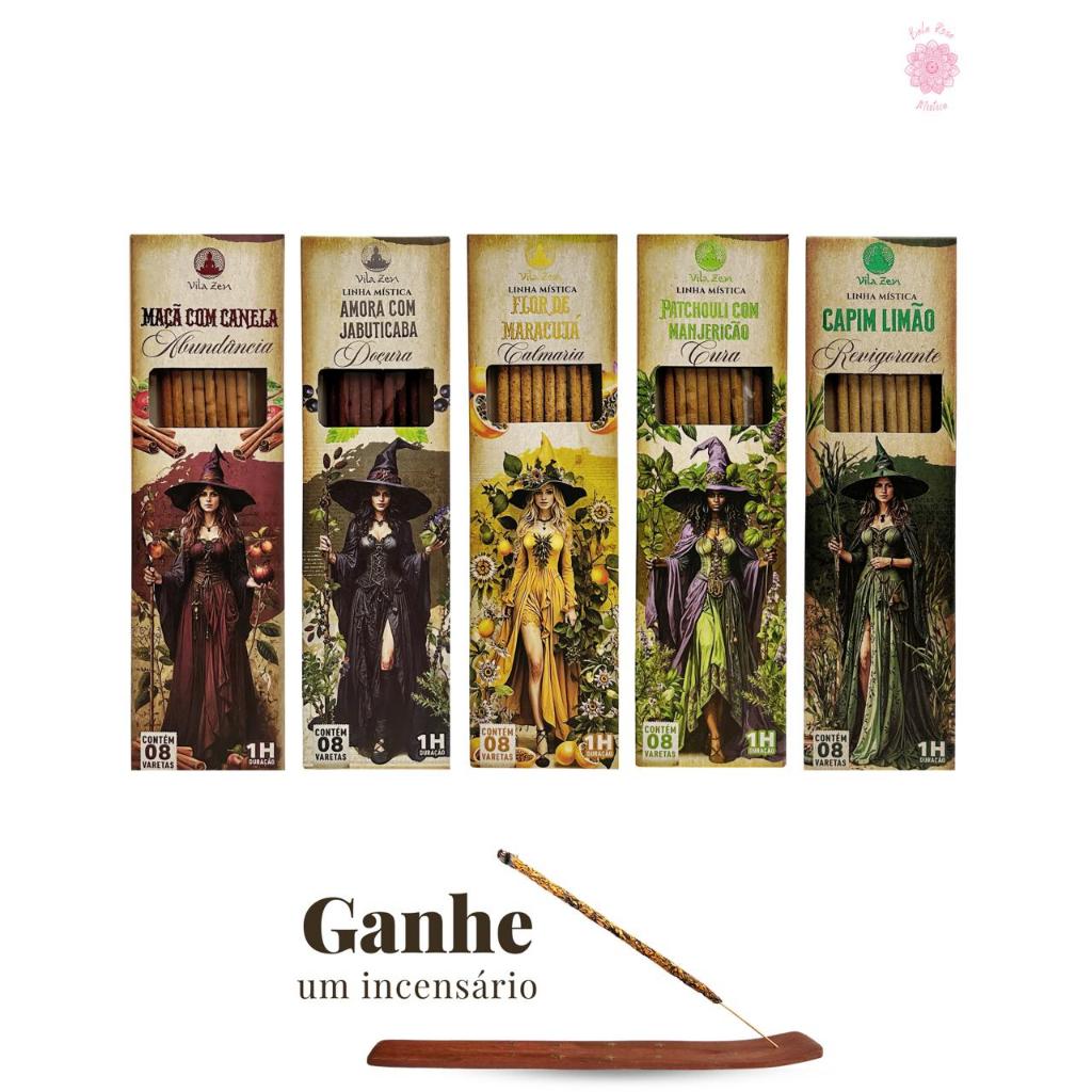 Kit 5 Incensos Artesanais Naturais - Aromas Das Bruxas Meditação Cura Abundancia e Espiritualidade Transforme seu ambiente com os incensos da Linha Mística da Vila Zen, desenvolvidos para proporcionar bem-estar, harmonia e conexão espiritual. Cada embalagem contém 8 varetas artesanais, com uma queima prolongada de aproximadamente 1 hora. 🌿 Aromas Disponíveis: ✔️ Patchouli com Manjericão (Cura) ✔️ Flor de Maracujá (Calmaria) ✔️ Amora com Jabuticaba (Doçura) ✔️ Capim Limão (Revigorante) ✔️ Maçã com Canela (Abundância) 💨 Produz uma fumaça leve e um aroma envolvente, ideal para momentos de relaxamento, meditação ou purificação energética. 📦 Conteúdo da Embalagem: 1 Caixa com 8 varetas de incenso Embalagem ilustrada com design místico e exclusivo 🌟 Benefícios: ✅ Perfuma e purifica o ambiente ✅ Ideal para rituais, meditação e relaxamento ✅ Ingredientes naturais e alta qualidade 🚚 Envio Rápido para Todo o Brasil! Garanta já o seu e eleve suas energias! ✨ ⚠ Imagens protegidas pela Lei de Direitos Autorais (Lei nº 9.610/98). Qualquer reprodução não autorizada está sujeita a denúncia e medidas legais(civil e criminal).