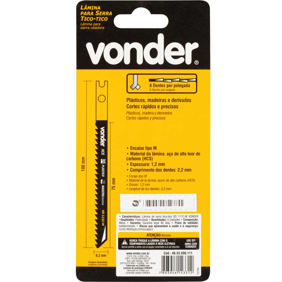Kit 5 Lâminas de Serra Tico-Tico Universal VD111CM - Vonder - Cortes Precisos em Madeira e Plástico