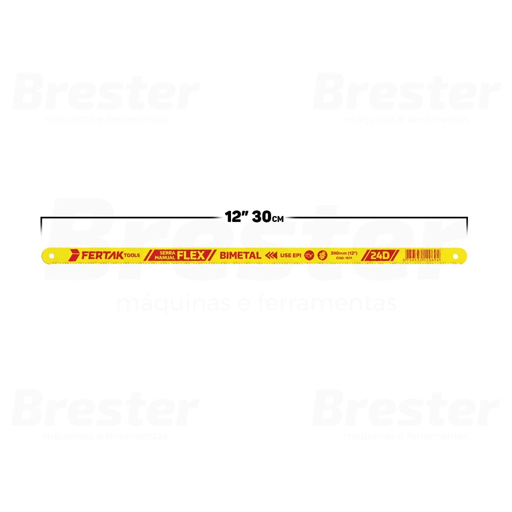 Olá, Bem vindo a Distribuidora Brester. Trabalhamos com uma grande variedade de ferramentas elétricas e manuais, descartáveis, eletroeletrônicos, artigos para casa, artigos de petshop e outros. Aqui você encontrará Produtos Originais, Nota Fiscal, Pronta Entrega e Envio Imediato! * Características do produto * Kit 5 Lâminas Para Arco De Serra 300mm Fertak A lâmina garante cortes precisos em madeira, metal e outros materiais, economizando tempo e esforço. É uma ferramenta versátil que irá atender as suas necessidades. Feita para durar, você não precisará se preocupar em substituí-la com frequência. Características do Produto: > Possui alta resistência; > Cortes mais rápidos; > Excelente desempenho; > Fácil manuseio. Especificações Técnicas: > Marca: Fertak; > Material: Bimetal; > Dimensões do Produto (C x L x A): 31,3 cm x 1,5 cm x 0,1 cm; > Peso Aproximado: 90g. - Marca: Fertak - Garantia: 90 dias contra defeitos de fabricação Vantagens de comprar na Brester: - Nota fiscal para Pessoa Física e Pessoa Jurídica. - Produto novo, com garantia de fábrica. - Produto a pronta entrega. - Envio em até 24hs em dias úteis após confirmação do pagamento. Obrigado por escolher a Brester Máquinas.