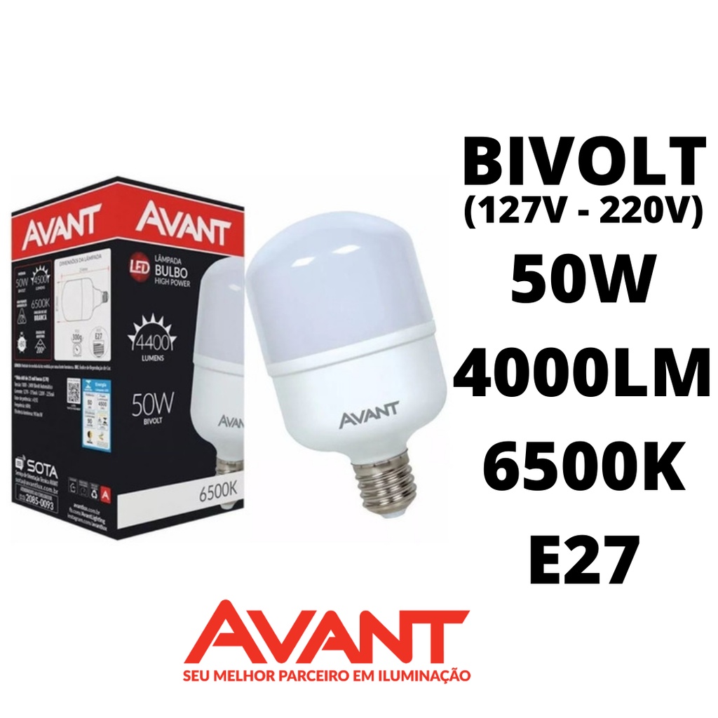 KIT 5 Lâmpada LED Bulbo 50w Alta Potência E27 - AVANT