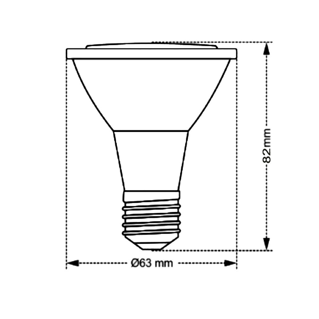 A lâmpada LED PAR20 com temperatura de cor em branco neutro (4000K) é ideal para ambientes que precisam de uma iluminação equilibrada, sem tons muito frios nem quentes. Esse tipo de lâmpada é muito usado para iluminação direta em áreas como salas de estar, cozinhas, escritórios e até mesmo em espaços comerciais, devido à sua alta eficiência e economia de energia. Especificações · Uso: Interno · Voltagem (V): AUTOVOLT (100-240) · Frequência (Hz): 60 · Fator de Potência (FP): 0,7 · Potência Máxima (W): 7 · Base: E27 · Ângulo de Abertura (º): 36 · IRC: 80 · Temperatura de Cor (K): 4000k Branco Neutro · Equivalente Incandescente (W): 50 · Dimerizável: Não · Garantia: 2 anos · Vida Útil (h): 25000 · Produzido em: Plástico e metal · Comprimento Produto (mm): 63 · Largura Produto (mm): 63 · Altura Produto (mm): 82