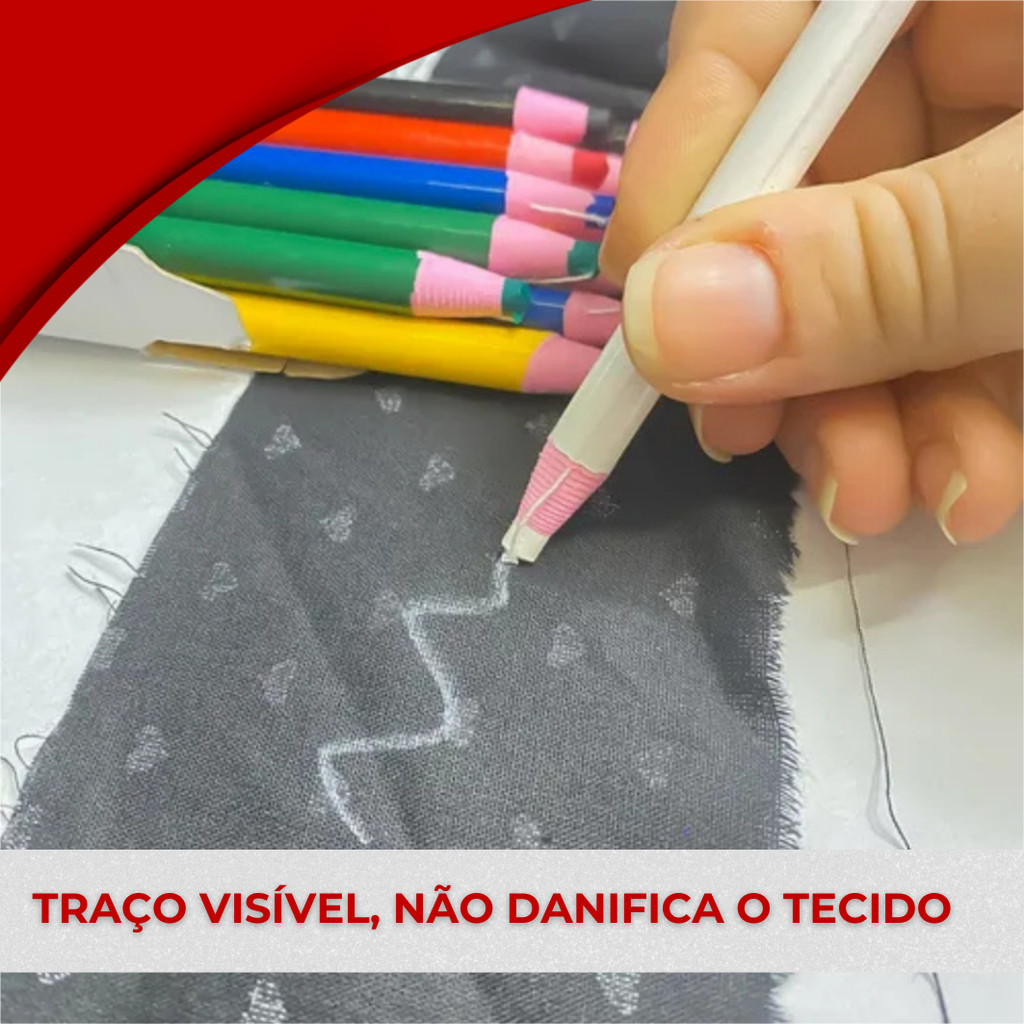 Kit 5 Lapis Marcador de Tecido Giz Alfaiate Marcar Riscar Tecido Patchwork Costura Diversas Cores