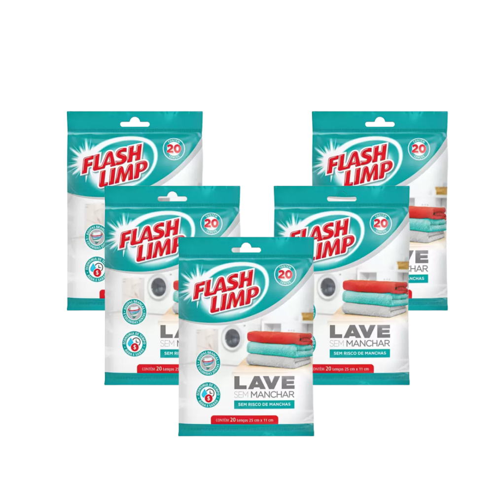 Kit 5 Lave Sem Manchar Flashlimp Lenços Antimanchas Para Lavar Roupas Coloridas Flash Limp