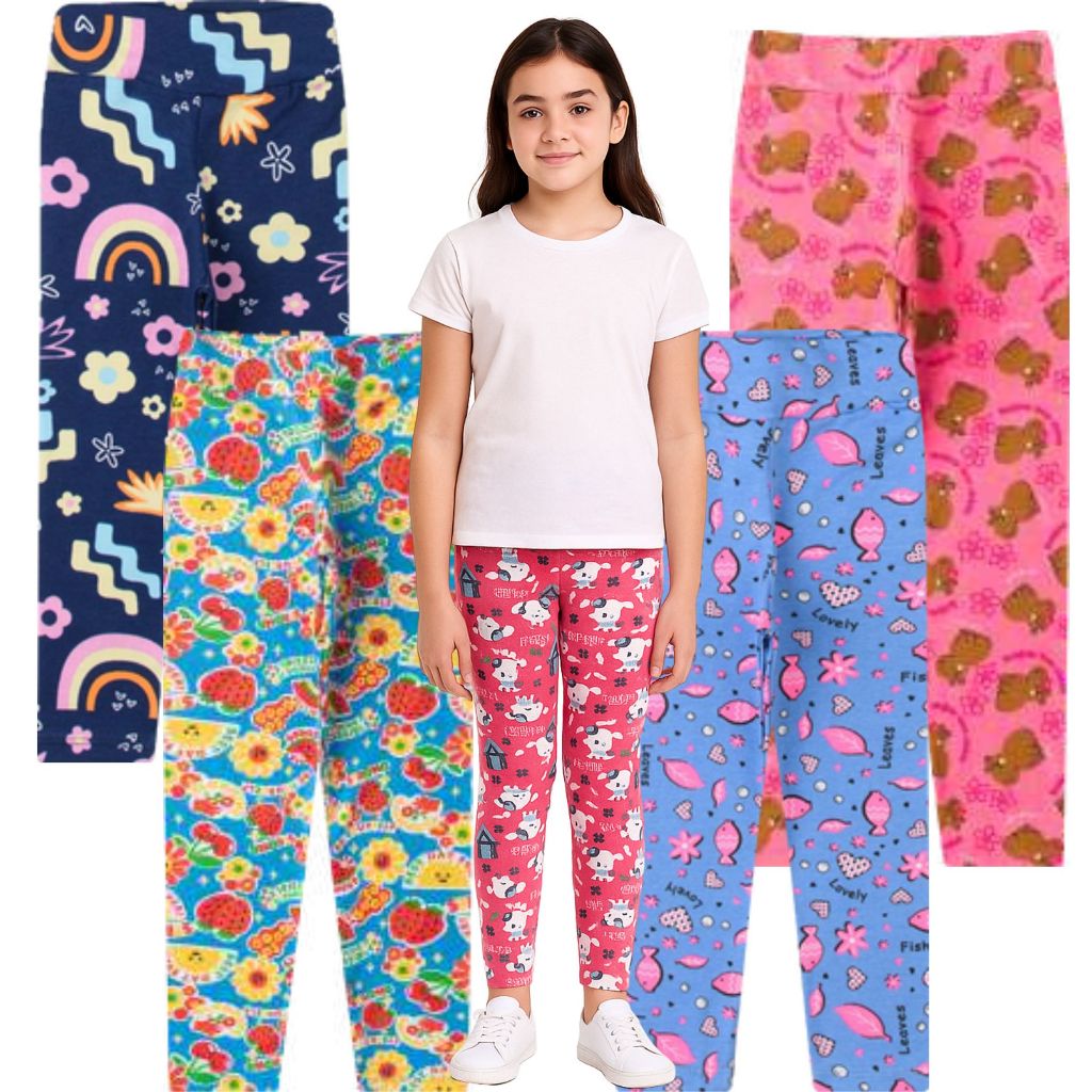 Kit 5 Leggings Infantis Estampadas – Tamanhos 1 ao 14