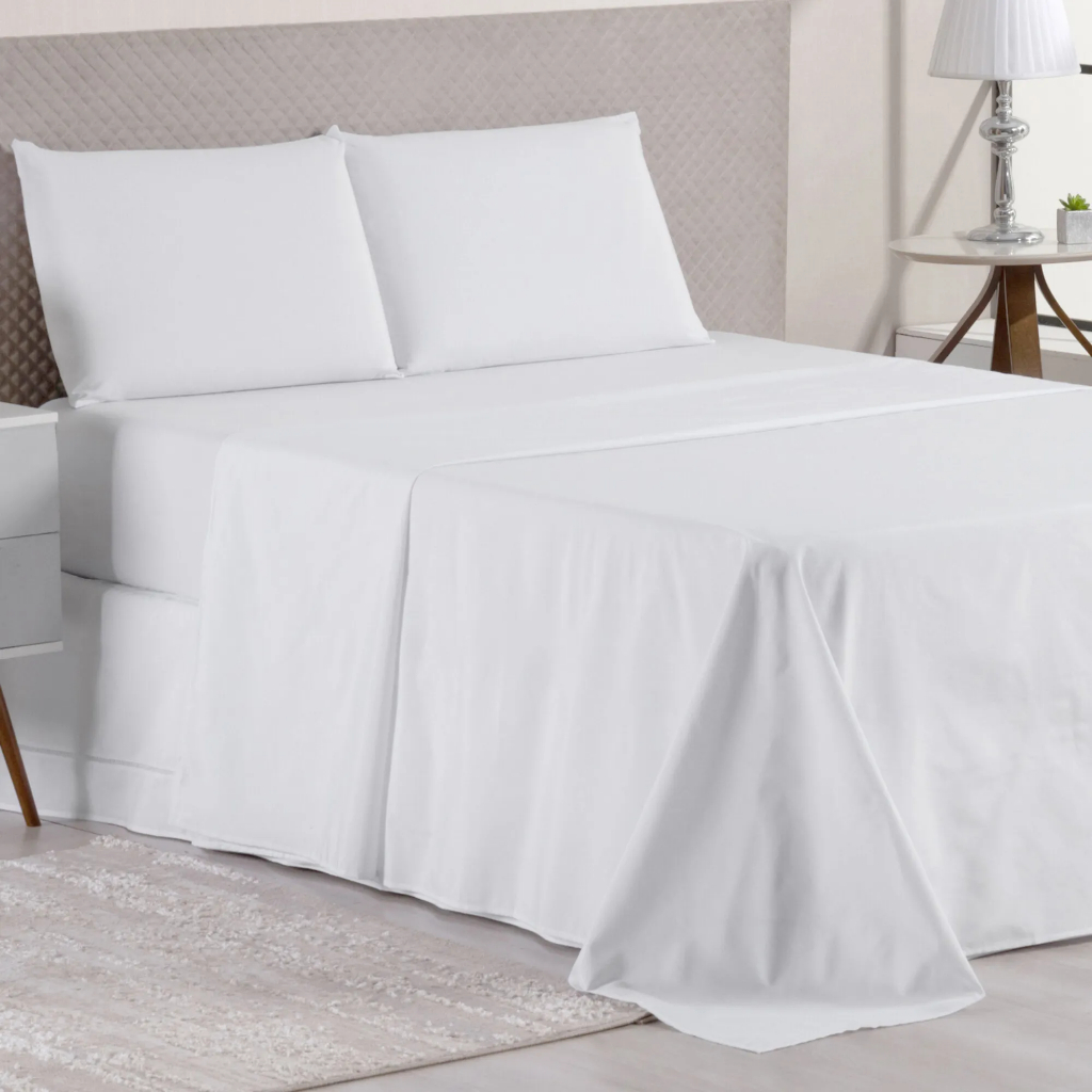 Kit 5 Lençol Sem Elástico Branco Casal Percal 400 Fios 100% Algodão – Toque Macio, Alta Qualidade